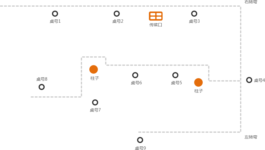 定点布置RFID地表点建立地图数据:点—线—面;在特殊位置,通过内置芯片触发特殊指令(左转、右转、转身、送餐到达、返回)