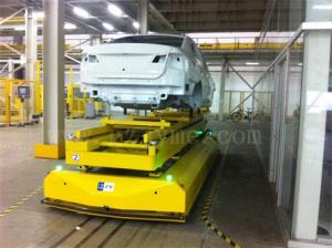 1) 使用双向辊道重载型AGV,完全取代人工推动重载台车转运车身,实现车身出入库自动化;