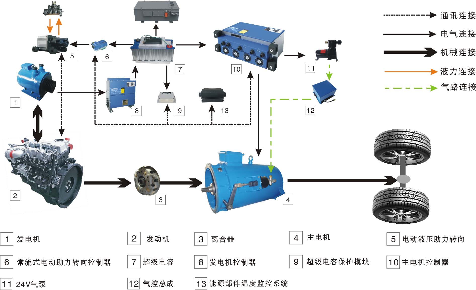 1、动力传动单元:发动机+电机直驱;