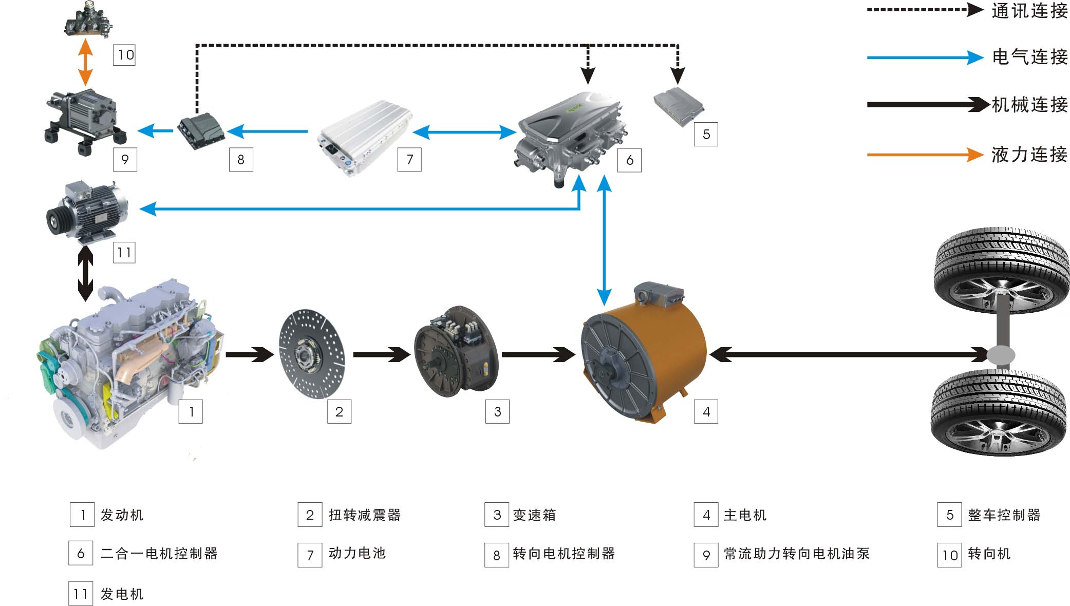 2、采用主电机和发电机集成一体化控制器(2 in 1);