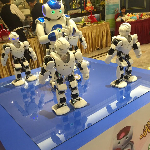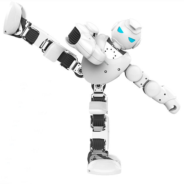 可仿人类自主直立行走,动作准确灵活,可表演、跳舞、俯卧撑等。