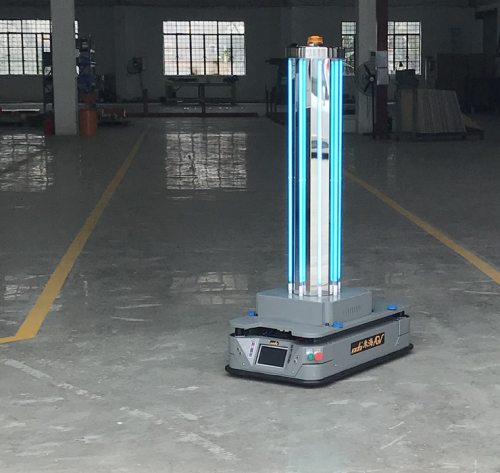 米海杀菌消毒机器人:将紫外灯消毒器搭载在AGV小车(搬运机器人),可以迅速杀灭细菌繁殖体、芽孢真菌、病菌等病原微生物,对室内空气和物品进行彻底消毒。