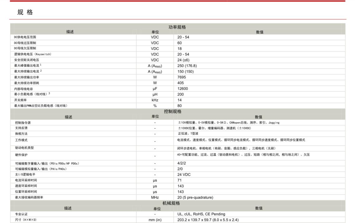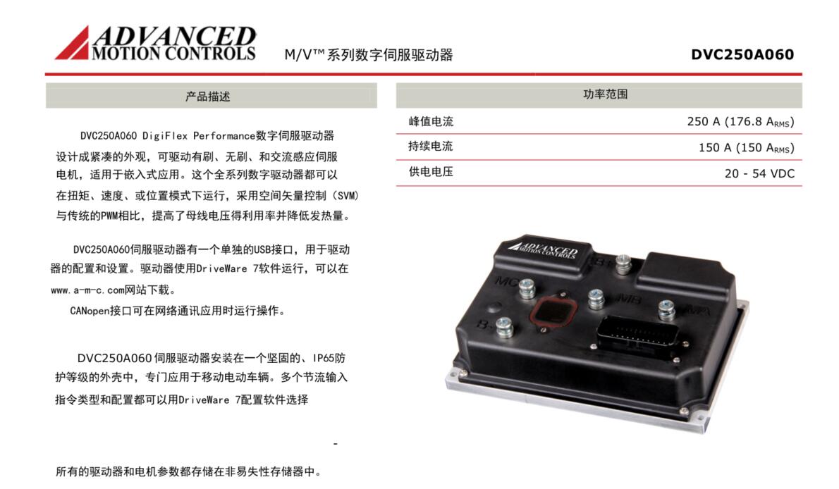 DVC250A060 额定电流150A,峰值电流250A,供电电压20-54VDC;