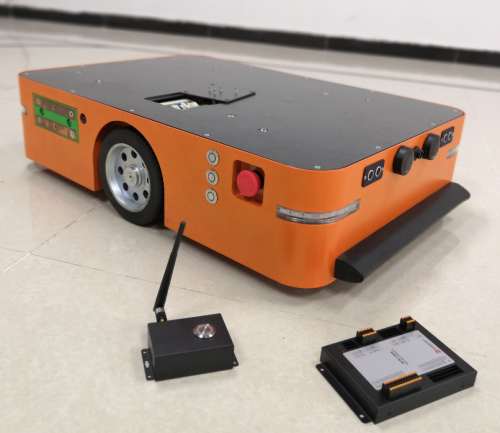 AGV底盘高度只有 210mm ,低重心结构。移动机器人上面板预留机械安装接口及外扩电气接口,例如电源接口、通信接口、接口等,方便客户扩展机械臂、传输线、顶升机构等装置。底盘配置有声光语音报警,锂电池,自动充电接口,433及WIF模块,超声波避障,电池可快速更换等硬件功能。该AGV底盘不是一个仅仅沿磁带行走的底盘,其控制器软件功能强大,配置丰富,用户可以使用自带的上位机快速绘制线路图,自主规划线路,即使路线复杂。可以快速导入项目应用,后续线路修改也非常便捷,AGV底盘还具有呼叫任务管理功能,配上呼叫器可以非常简单的实现任一位置呼叫,不需要进行大量编程。