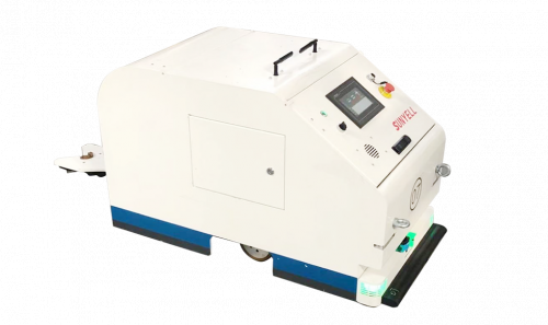 尾部配备挂钩装置,可在AGV尾部牵引料车;具备自动脱挂钩功能(需配合辅助机构),从而牵引带轮器具(料车)到指定位置。配合全自动上线系统以及取料机构即可实现线边上料的自动化操作。该车体结构紧凑,行走灵活,广泛运用于汽车、家电、电子等诸多行业。