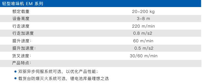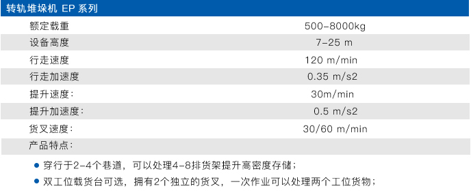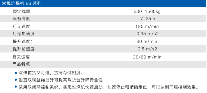 托盘堆垛机比叉车作业效率高很多,高效的堆垛机可以在巷道内满足您的存取需求。Eoslift堆垛机可广泛适用于不同单元货载范围和仓库高度。