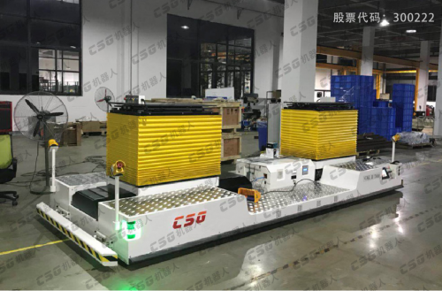 双车联动重载AGV,主要用于工厂内重载、长物料的运输工作。单台AGV为潜伏式举升AGV,双舵轮驱动、激光导航、激光避障、自动充电,可独立使用,单台载荷分别有5吨、10吨、15吨和20吨等多个型号可选;双车联动工况下,最高可承受40吨外载荷,物料长度可达26米,双车联动定位精度±10mm,能够满足室内、室外等场合。