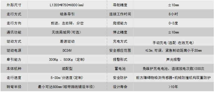 ·结构外形美观,坚固耐用,批量生产,十年应用,功能强大。 ·带升降功能,实现自动上下料,柔性好,广泛应用于生产线输送部品替代传统装配线,如汽车部总装厂,分装线。 ·采用进口无刷伺服电机,红外(可选激光)AGV专用安全传感器,安全触边,双安全保护。 ·人机界面交互方便,参数用户灵活设置,单片机控制系统,性能稳定可靠,安装维护方便。 ·RFID数字标签指令控制,客户灵活编制AGV航线表及动作。