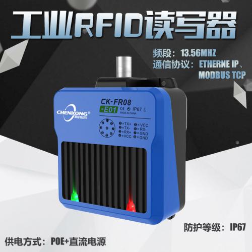读卡器同时支持标准工业通讯协议 EtherNet IP 和 ModBus TCP,方便用户通集成到PLC 等控制系统中。读卡器内部集成了射频部分通信协议,用户只需通过以太网接口接收数据便能完成对标签的读取操作,而无需理解复杂的射频通信协议。