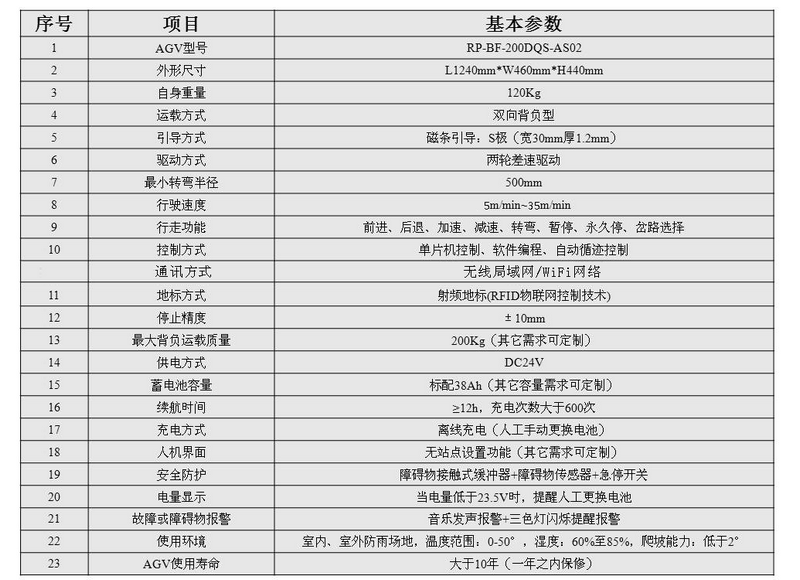 产品描述:全球首创最稳定的单驱动可双向转弯行驶的背负型AGV,瑞鹏机器人发明专利产品! AGV钣金车身采用喷塑处理工艺,外观美观,表面坚固,耐腐蚀。此款AGV为双向背负型,可前进、后退、转弯,有效缩短AGV行驶距离,可在狭小的空间任意单环线来回双向转弯行驶,可实现单向AGV无法实现的行驶路径。