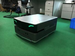 DZ-80无轨导航AGV小车(激光场景导航AGV小车)是米克力美科技针对工厂、物流等运输业研发的国内首款无轨导航并支持二次扩展的移动机器人平台,同时也是一款完全自主移动的智能轮式机器人。DZ-80无轨导航AGV能自动识别所在通道、电梯和房间的位置,使用激光扫描全自动智能规划路径,实时构建地图来进行导航,是全球唯一解决机器人跨楼层的地图识别,并且能够实现360°旋转,在行驶过程中自动避让人和障碍物。在操作时,相关权限人员可以在DZ-80无轨导航AGV侧面的控制面板直接选择目的站点或者路线,机器人即可自动进行物料、货物等托运作业。