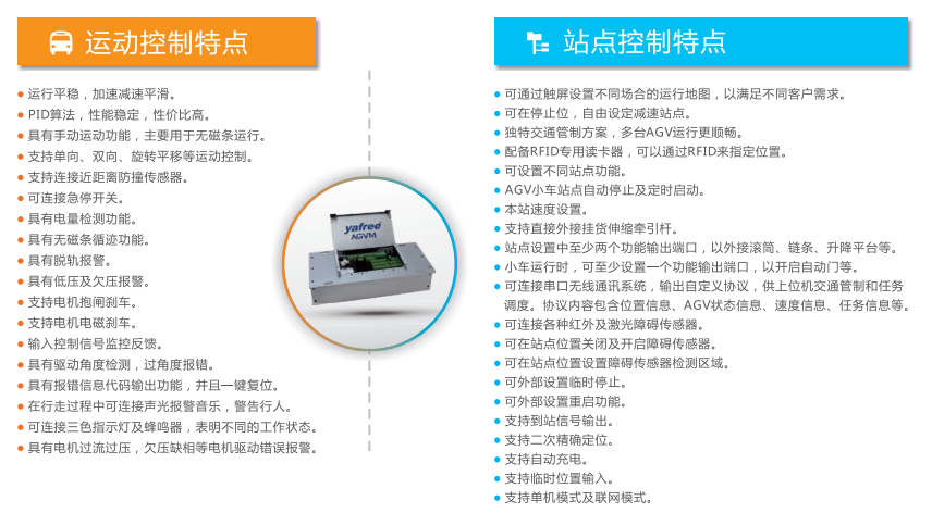 雅飞科技核心团队自2008年以来,一直从事移动机器人AGV核心技术及周边配件研制,并与众多高校合作,具有丰富的专业技术研发和实际经验积累。主要提供AGV解决方案、AGV驱动模块、AGV磁导航传感器、AGV磁条及其他相关附属产品。雅飞科技一直努力将AGV模块化、标准化,让每一位客户能轻松搭建AGV。主要客户有世界500强企业,中国A股上市公司等。