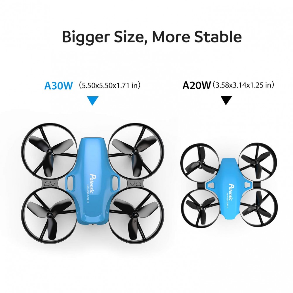 Smart and Fun: Through the APP Control and the Gravity Induction Mode, you can fly Potensic A30W forward/backward, left/ right and along the direction you indicate with your phone. * APP compatible with Apple iOS/ Android phones.