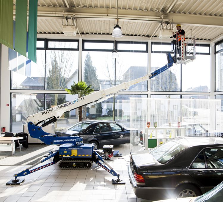 意大利Blue lift生产的C13型履带式登高车是一款小巧玲珑,功能强大,而且非常灵活的产品,作业高度为13米,承载能力为200公斤,采用无痕迹橡胶履带,整车长度仅为3.88米,可以在室内灵活行驶到各种难以到达的区域。C13型履带式登高车适合在商场、办公楼、野外高空作业和古建筑等需要对地面压力小,又需要高空作业的场合使用。