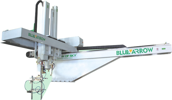 成品臂为取出产品及水口,上下手臂结构均为双截式;可以增加料头臂用于夹水口;料头臂可以选择用气缸驱动或是AC伺服马达驱动。