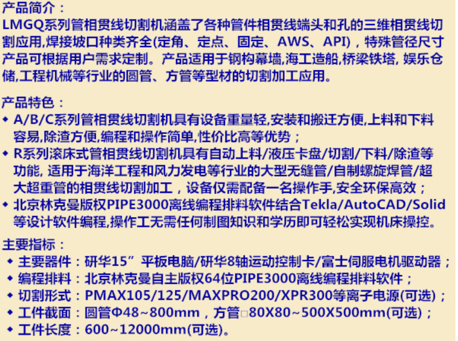 林克曼 LMGQ-4~6轴圆管相贯线切割机