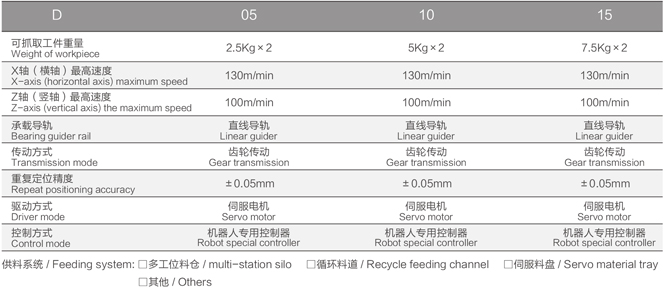 D20系列属于中型机器人,该系列机器人适合与两台数控机床组成一条自动生产线,可完成零件的两个工序(或单一工序)的加工。