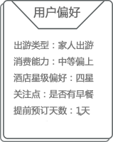 基于用户酒店住前、住中、住后全数据,以用户标签形式,勾画用户的信息全貌,分析用户的行为习惯和消费能力等,个体画像可用于个性化服务或营销,群体画像也可用于决策支持等应用场景。