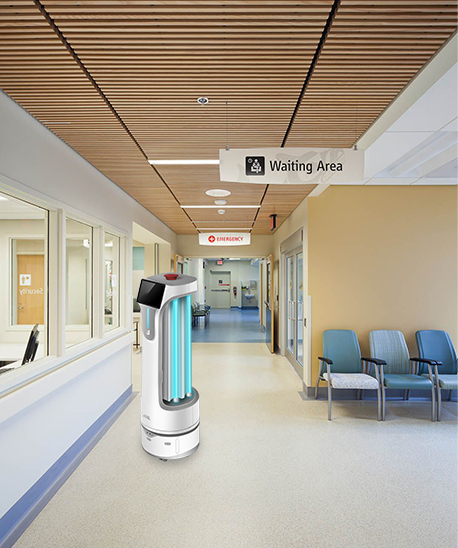 BP-MS1紫外线消杀机器人是搭载了功率前进的UV-C消毒灯的自主移动机器人平台,可以对室内空间的空气和物体表面进行安全高效的消毒灭菌。目前虽然人工清扫仍然是许多企事业单位的主要清洁手段,但是员工对重复性工作的疲劳感和疏忽导致清洁效率和效果并不客观。所以,十分有必要使用紫外线消毒设备来确保对空气和物体表面进行有效的消毒灭菌。通过BP-MS1用户可以轻松的实现消毒灭菌流程的自动化,大幅减轻人力及时间投入成本。