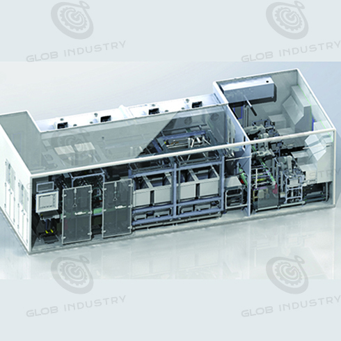 此自动化作业线是对裸电芯生产过程中使用过的Tay盘(流拉盒)进行清洁,消除表面颗粒污染风险,使其能够再次投入生产。线体主要包括上料缓存、拉开变位、Tray装篮、超声波清洗、洁净压缩空气吹扫、真空干燥