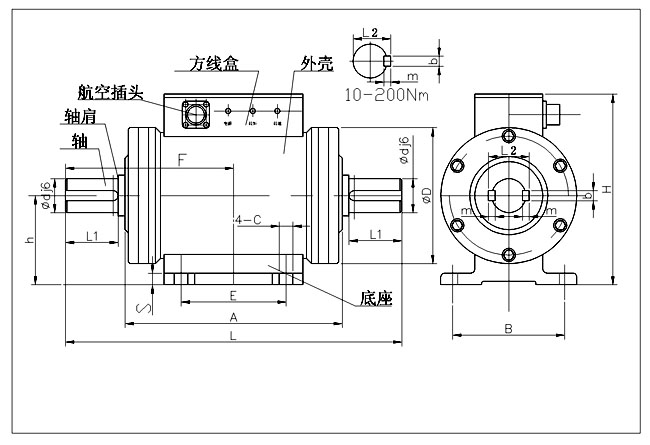 | 规格 | Φd(j6) | ΦD | A | L | L1 | H | h | E | E1 | B | B1 | C | F | S | 标准转速(r/min) | C型键 |