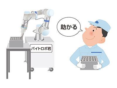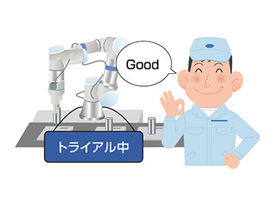 01 用于展览和活动 客户反馈 Osada Corporation 用作自主开发的异物清除装置的操作辅助装置 我们在内部开发的异物去除装置的展览会上租用了 UR5e 作为操作辅助设备。 UR3e 工作半径:500mm 协作机器人泵 ECBPi 承载重量:2kg 铝制框架安装 机身重量:75 kg UR5e 工作半径: 850mm 便携重量 携带底座 机身重量:30 公斤 解决方案 至少可以租用 1 天。我们还处理手、坐骑等。 如果您想要通用产品以外的其他产品,我们有一个名为“展览包”的产品。还可以与附属的 SIer 合作创建客户特定的手或程序。 你的担心 我想在展会上使用机器人大约一个星期来辅助我的设备操作,但我可以租用吗? 02购买前验证 解决方案 如果你租它,它是完美的试用!您可以以比购买更低的成本试用它。 在购买昂贵的机器人之前,为什么不提前租用它并进行验证呢?您也可以在租用后购买。 你的担心 我想试试引入机器人的效果,但是如果我买了它,它不起作用,那就没用了。 03代替临时工 客户反馈 WHILL Co. , Ltd. 用于下一代个人移动性的强度测试 直到现在,对产品进行耐久测试时,都是靠人力重复上万次,但通过租用UR10e,机器人每次都可以用相同的力重复,所以可以进行更准确的测试。能够做到。它还帮助我有效地利用了我的时间。 UR5e 工作半径: 850mm 便携重量 2F-140 便携重量:2.5 公斤 携带底座 机身重量:30 公斤 UR10e 工作半径:1,300 毫米 2F-85 便携重量:5 公斤 铝制框架安装 机身重量:75 kg 解决方案 机器人代表人类工作! 如果可以使用机器人代替人类,则无需担心招募或培训人类。此外,如果您租用它,您可以一天 24 小时在您需要的时候和需要的时间使用它。 你的担心 我们每年在固定时间临时招聘,但总是很难找到人和教工作。 04用于在不需要时 改善空间 解决方案 如果是租用的,只能在想用的时候使用,不用的时候也能确保空间! 协作机器人可以在狭小的空间内操作,但如果您因为经常不使用而受到空间的困扰,只在需要时租用是一种解决方案。此外,如果您将其与可移动的支架组合使用,您可以轻松移动它。 你的担心 当您不使用机器人时,这是浪费空间。 重复时安心!我们还将存储您的程序。 客户在租赁时创建的程序将根据要求由我们存储和管理。它可以在需要时复制。 以前的程序可以立即使用! 它免于繁琐的文件管理,可以 作为备份使用! * 一日租赁是指收取一日费用。 无需麻烦的换纸 / 通过WEB和电子邮件的简单程序!