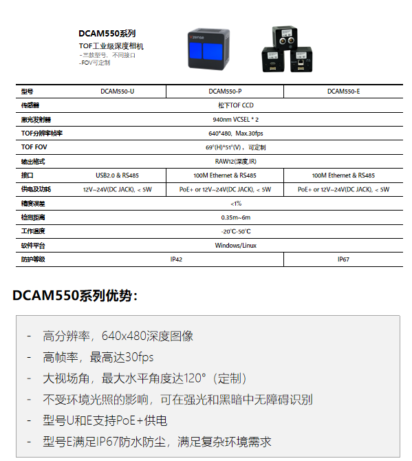 维感科技 3DTOF深度相机DCAM550系列 (基于PANASONIC TOF:芯片)