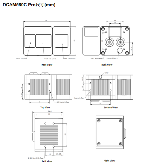 维感科技 3 D TOF RGBD深度相机DCAM560C系列 (基于PANASONIC TOF芯片)