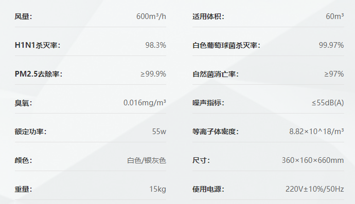 功能描述:侧面进出风,低风阻、低功耗、低噪音;低温等离子体 消毒技术,消杀更强更彻底;0耗材,后期维护成本低;低衰减,连续10年使用寿命