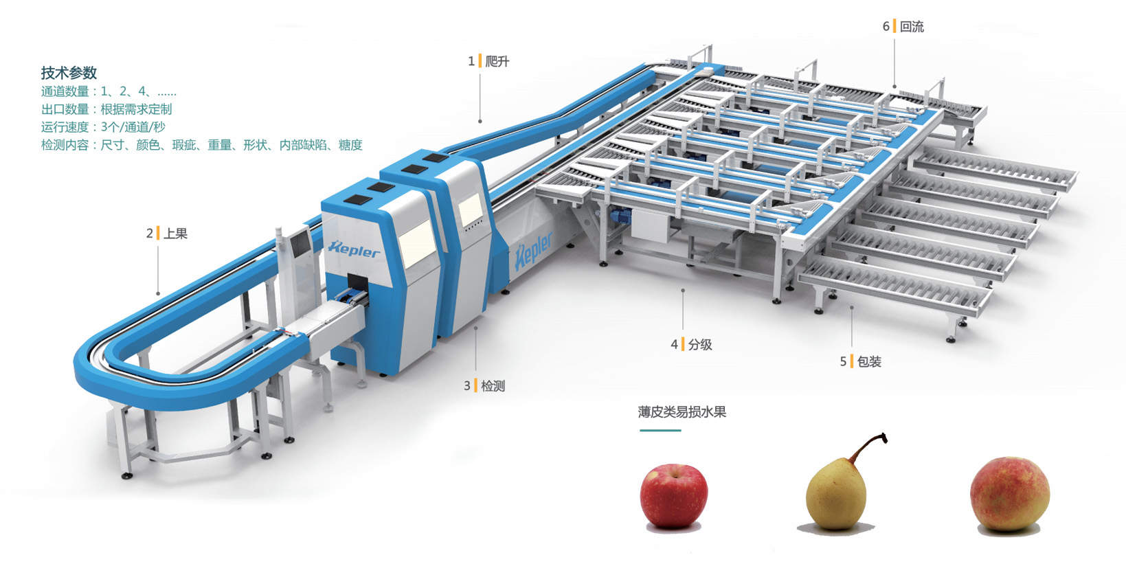 开浦科技自由果托式水果内外品质智能分选系统 | 大型果
