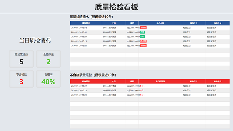将车间的不合格品统计数据汇总到品质部看板上,做到及时预警及时处理。