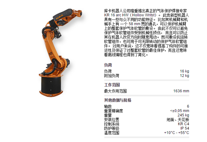 摩瑞特 KUKAKR 16-2弧焊工业机器人