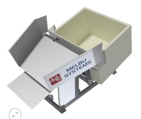 图表顶部将装满的容器向上抬起,将容器倾斜到一侧,使其内容物落入轴中以进行进一步处理内容物。