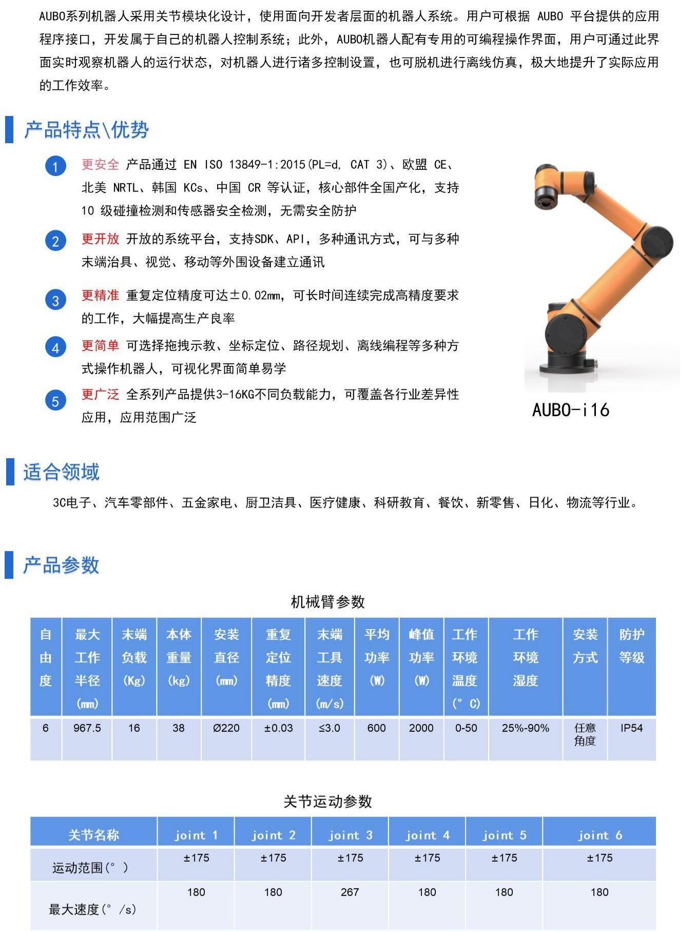 AUBO-i16协作机器人