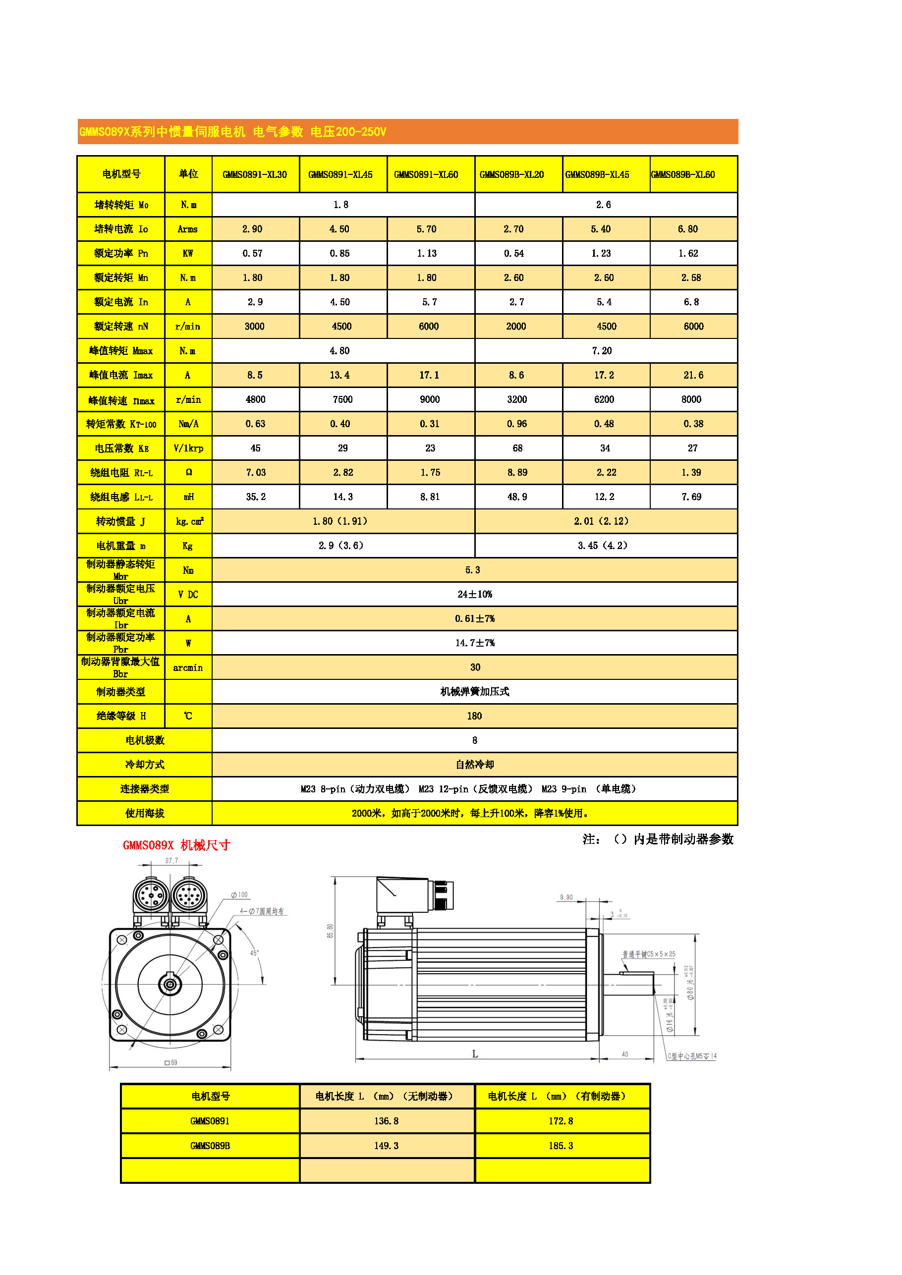 GMMS0891无刷交流伺服电机有:GMMS0891-XL30,GMMS0891-LX45,GMMS0891-XL60,GMMS089B-XL20,GMMS089B-XL45和GMMS089B-XL60几大系列,电机具体型号请按照选型页选型。