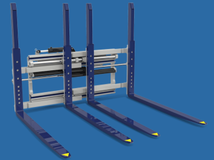 货叉跨距设置可以调整,以适合于搬运不同品种的托盘。