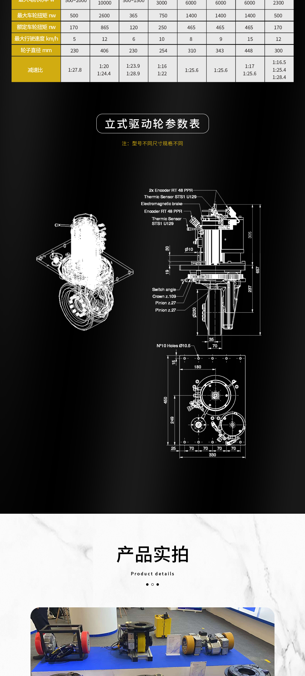 AGV重载驱动轮CFR驱动舵轮叉车电驱动轮卧式