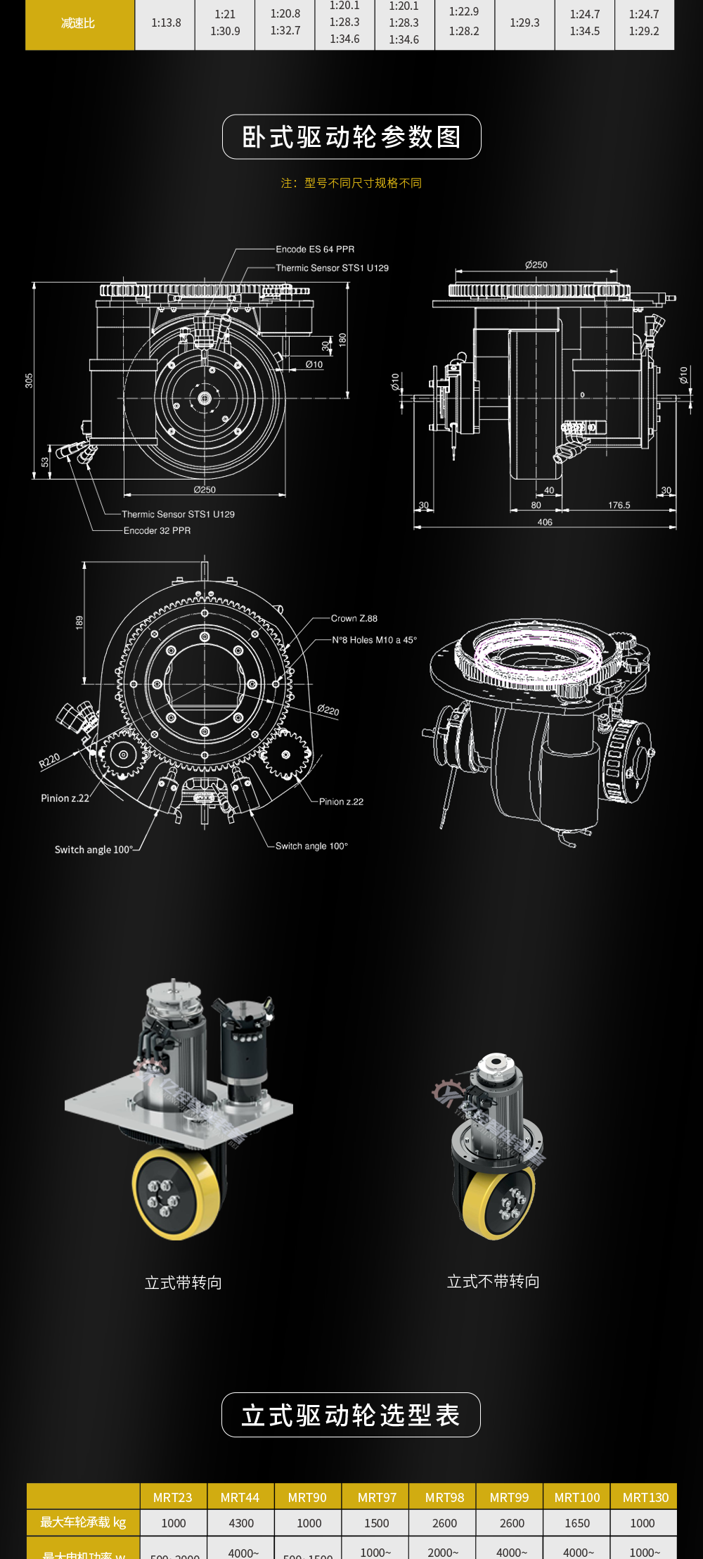 AGV舵轮CFR舵轮驱动轮立式卧式聚氨酯MRT10