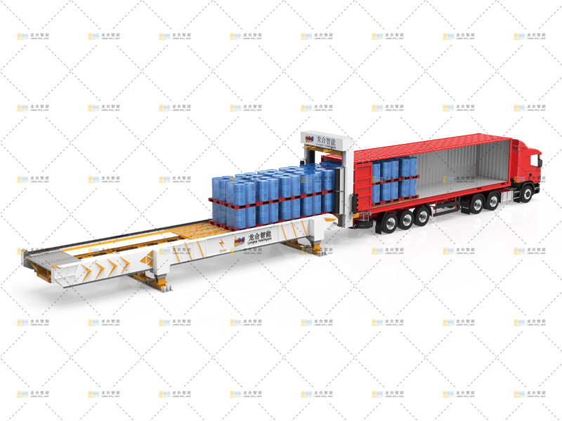 极速智能无人装卸系统属于龙合智能无人装卸系统三大系列产品之一。整车货物预先出库在装载平台上紧密排列备料,车辆停靠到位后一次性进入车厢装载,3-6分钟完成一车货物的装载。车厢内不需要安装其它装卸车设备,不需要对车辆进行改装。龙合极速智能无人装卸系统可适用于20尺/40尺集装箱。