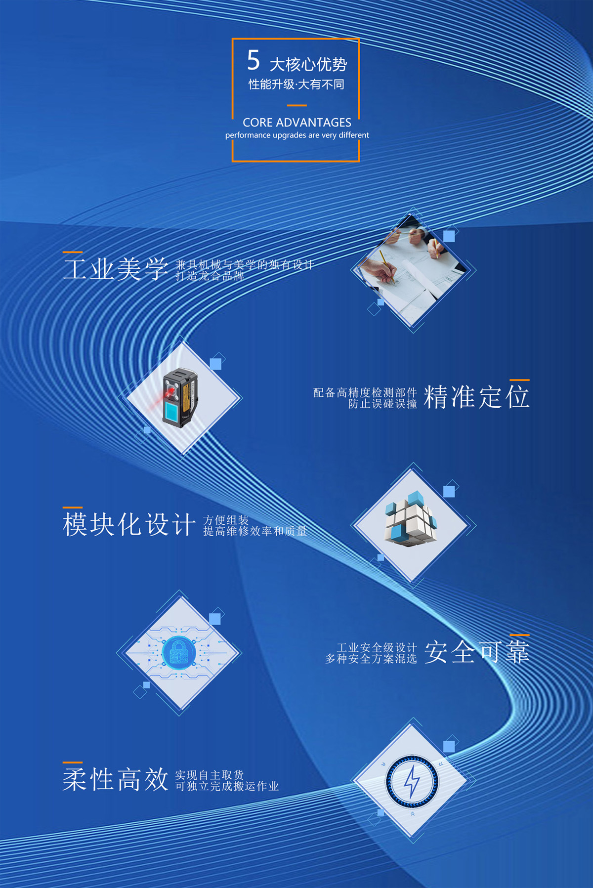 劲驰搬运机器人系统系统属于龙合智能无人装卸系统三大系列产品之一。突破性创新集装箱内无人导引技术,实现智能搬运机器人自主导航进出集装箱装车作业,结合智能终端物料转换系统、桁架取料机器人及自适应装卸平台,实现产品全自动化无人装卸作业。龙合智能劲驰搬运机器人系统可适用于20尺、40尺、45尺集装箱。