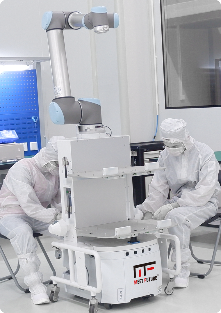 协作式机器人用于半导体洁净室内区域间各生产设备站点与存储设备间晶圆载具的传送,适合使用在人工搬运且重复性高的区域。使用协作式机器人可重新布局工作环境,实现区域自动化——物料自动搬运、自动上下料等功能,减少操作工数量,降低人力成本,减少环境污染,提高产品良率。