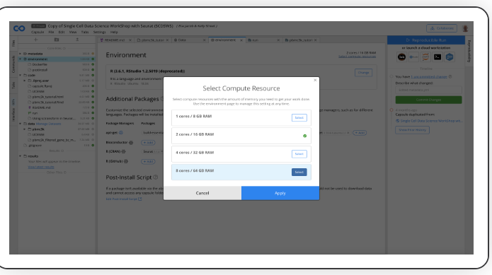 Code Ocean 计算工作台通过高度直观、即用型用户体验缩小技术差距,从而加快可用性、编码和数据工具集成以及 DevOps 和生命周期任务。