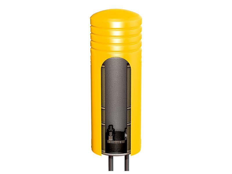 产品通过外壳旋转分散冲击及内芯的缓冲装置,能够很好的吸收及化解冲击能量,以达到保护设备和地面的完整。该产品没有外露螺丝,该设计能够很好的减少叉车轮胎的“啃胎”情形。