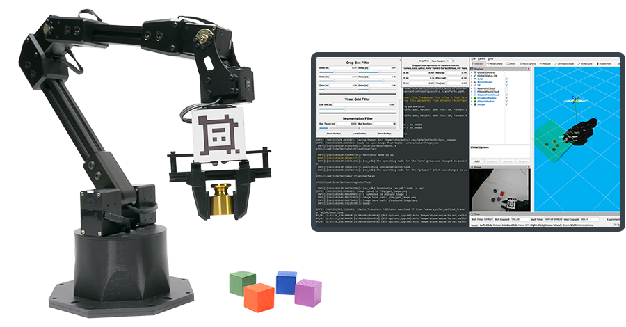 Interbotix X 系列手臂专为教育和研究而设计,支持 ROS + ROS2(Melodic、Noetic 和 Galactic)、Moveit、Gazebo 和 MATLAB® 以及演示和教学视频,可帮助您启动和运行您的平台不到一个小时。X 系列提供多种不同型号可供选择,具有 4、5 和 6 自由度选项,有效负载范围为 50-750g。所有 X 系列产品都在同一个中央开源代码存储库上运行。这些平台非常适合课堂,非常适合基于视觉的拾放、机器学习和人工智能等应用。