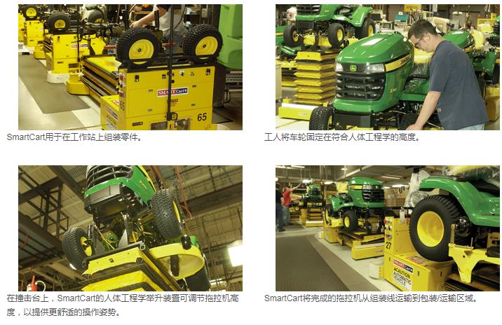 对于组装操作,可以使用负载搬运车或剪叉式升降机定制SmartCarts,以满足您的特定需求。它们还可以形成一条连续的运动路线,无限数量的SmartCarts在低速行驶的同时保持近距离同步。