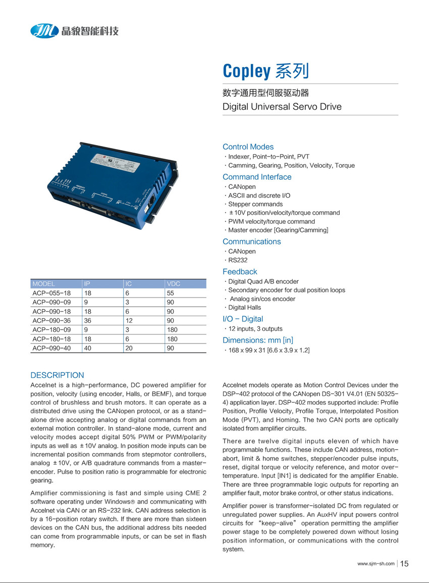 空心杯有刷电机(直径12mm-32mm,电压3V-24V) 驱动选配方案:10A-200A直流伺服驱动,可实现控制方式:IO口脉冲加方向,canopen总线,232串口通讯控制等。 减速机配套方案:高精密行星减速机,谐波减速机,RV减速机等可选配