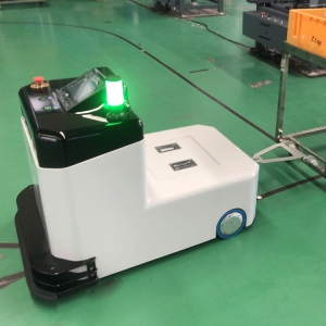 牵引式AGV,体积小巧,结构紧凑,搬运灵活,牵引可达500KG,。适用于各种空间较小,物料重的场所,通过磁条导引,采用高性能锂电池,AGV可实现自动与料车挂钩,牵引料车到达指定目的地后AGV自动与料车脱钩,完成牵引工作,支持快速换电。