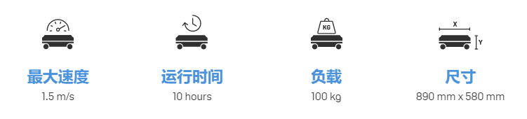 高度灵活的自主式运输,负载高达100公斤。 可在其上安装定制顶部模块,如箱子、货架、举升装置、传送带甚或协作机器人手臂,满足一切您的应用所需。 顶部模块易于更换,机器人因此可以重新部署,用于不同任务。