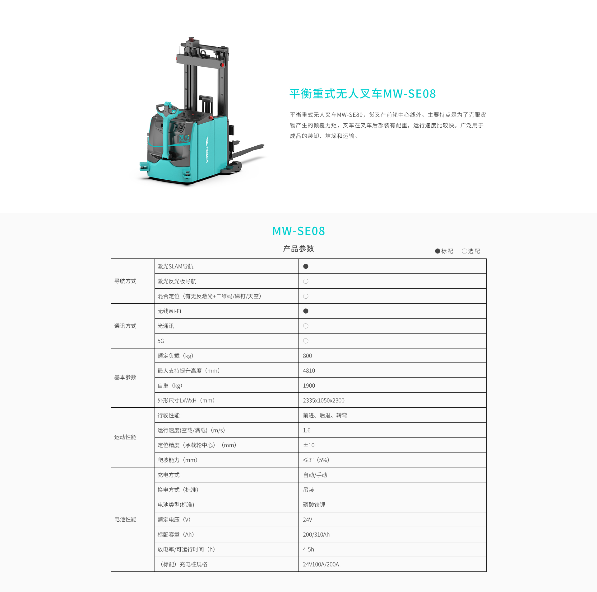劢微:平衡重式无人叉车MW-SE08