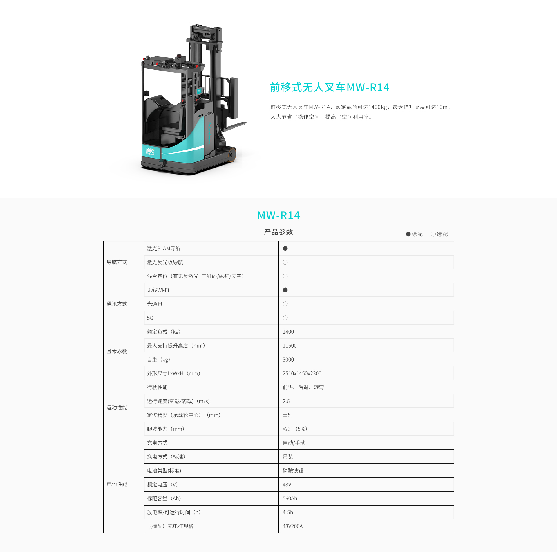 劢微:前移式无人叉车MW-R14